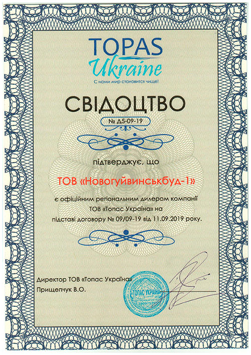 Павло (Житомирська обл., с. Довжик)С большим уважением и благодарностью за установку Топас 5 пр., а так же профессиональный монтаж. Робота выполнена на 12 балов. Огромная благодарность!!!